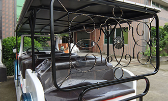 經(jīng)典復(fù)古老爺車節(jié)能環(huán)保,美觀大氣事業(yè)開闊噪音小。 復(fù)古歐式工藝窗花飾件,防水帆布頂棚,噴粉工藝扶手,防銹能力優(yōu)異。
