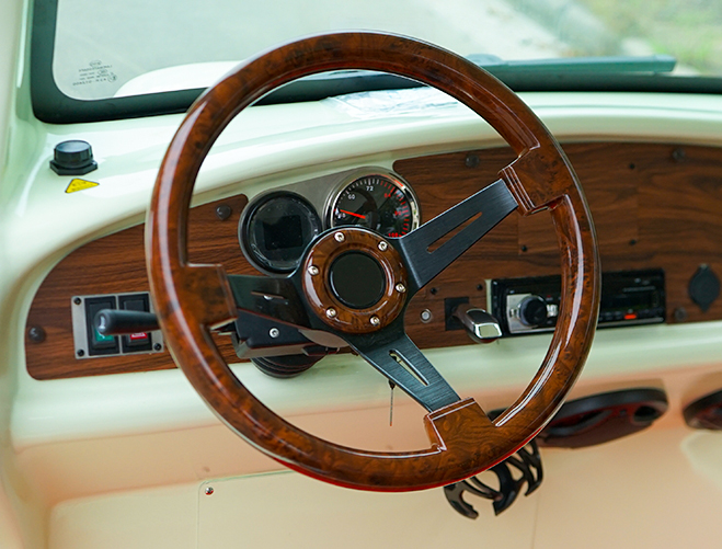 玻璃鋼車身前度高,耐腐蝕,壽命長。 全車采用汽車級優(yōu)質(zhì)油漆,電腦調(diào)漆,專業(yè)噴涂設(shè)備,烤漆工藝,色彩亮麗,歷久彌新。 專利前橋及懸掛,不磨輪胎。 整體式后橋、無縫焊接橋